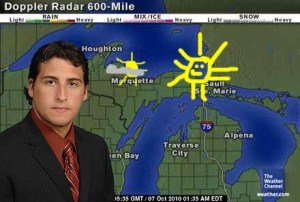 Hi folks, it’s Mike Seidel here with your weekend weather report. This weekend, the Bulldogs travel to Sault Ste. Marie, MI to face the Lake Superior State Lakers on Friday night. Tomorrow’s forecast is mostly sunny during the day with a high of 68, and a low of 44 tomorrow night. That’s Fahrenheit, folks, we’re not in Sault Ste. Marie, ON. No worries about rain but you might want a nice cozy jacket over your jersey. Expect a flurry of goals, though, because Lake State sucks.