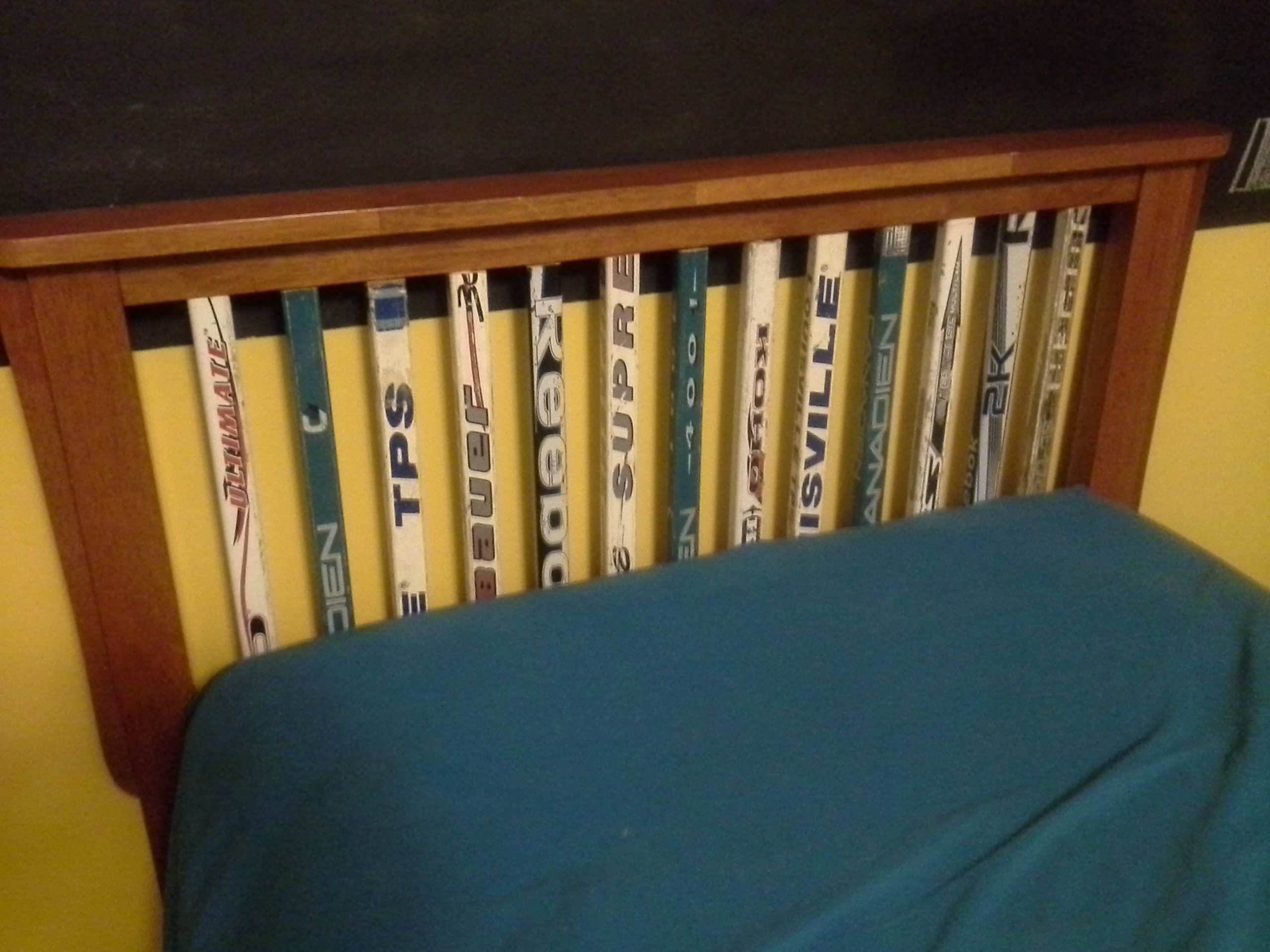 When RWD comrade, rabid Bulldog fan, and hockey mom extraordinaire Dawn tweeted her DIY hockey furniture a few weeks ago, I thought it was so cool I wanted to share it with you all. Dawn is a great lady and lifelong Bulldog fan, and you know she’s raising her son right because his dream is to lace ’em up for tDogs. Clearly a genius kid. His peewee team scored lots of goals last year to help raise money for Top Shelf to Food Shelf, which is coming up in a few weeks!